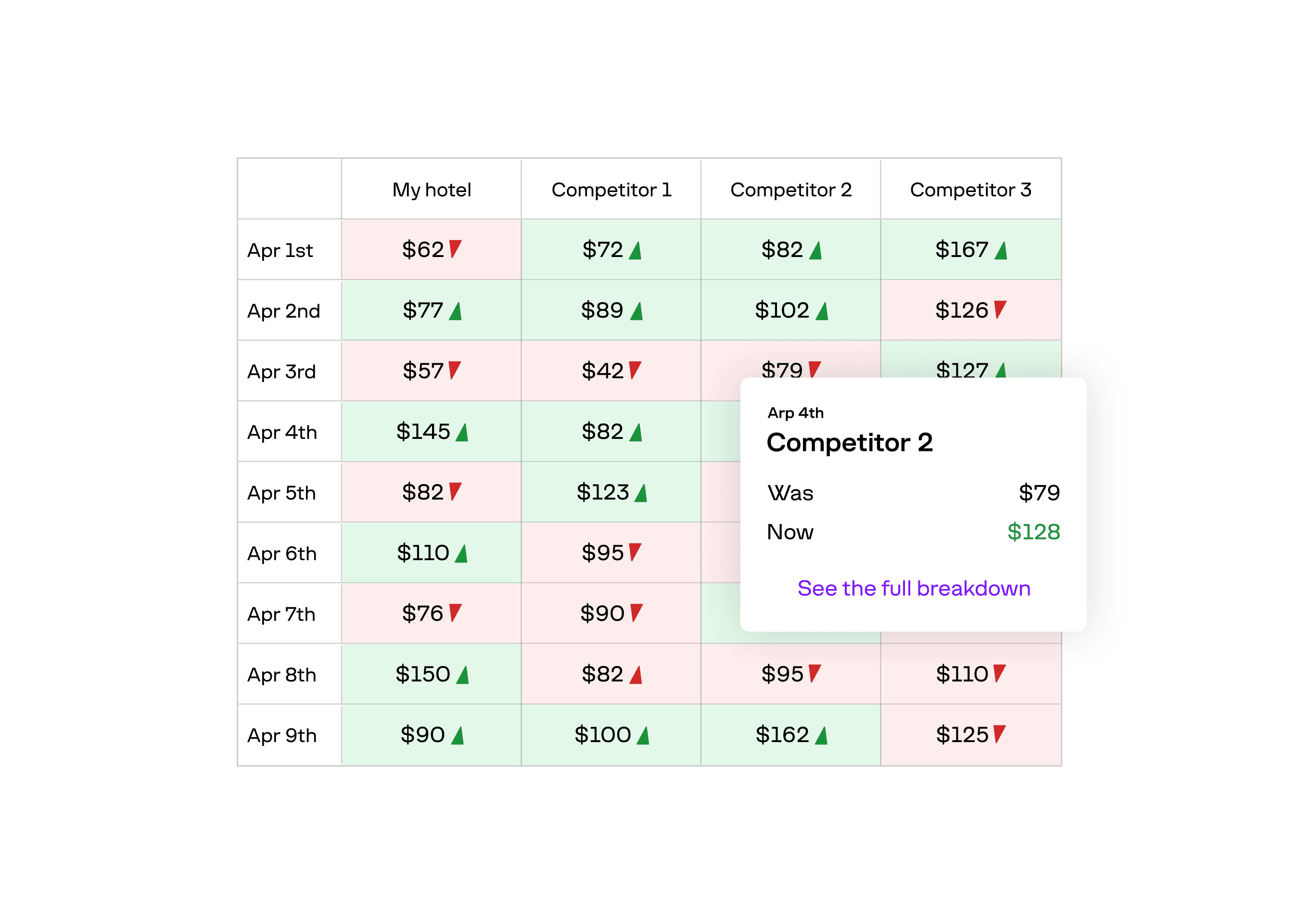All competitor price and restriction changes — on one screen.